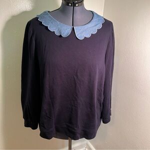 Talbots Chambray Collar Sweatshirt Navy Blue 3XP
