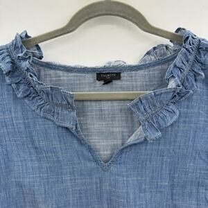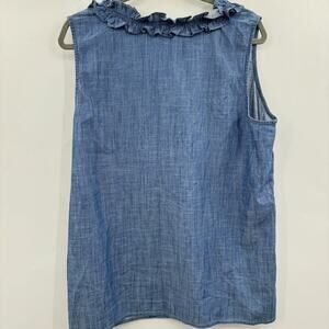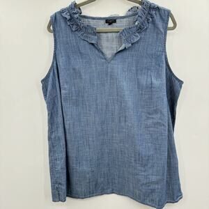 Talbots Chambray Cotton Ruffle Neck Top Sz 1X Blue Tank Business Casual Office