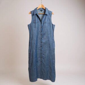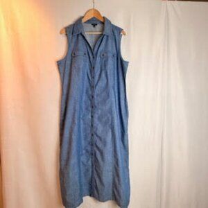 Talbots Chambray Denim Shirt Dress Sleeveless Button Front Belted Women’s 16