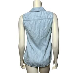 Talbots Chambray Sleeveless Button-Up Safari Utility Blouse Top Size 2 Blue