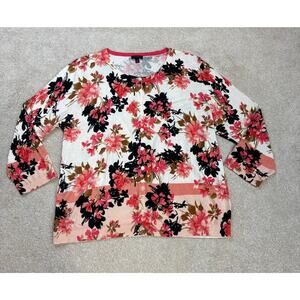 Talbots Charming Cardigan Pink Black White Floral Print Size XL