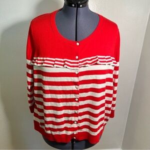 Talbots Charming Cardigan Stripe Ruffle Red White 3XP