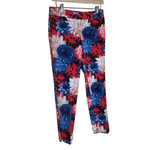 Take a look at these gorgeous ankle pants that showcase the stunning Dalia flowers in a variety of colors including coral red, blues, and white. Designed in the popular Chatham style, they come with a convenient side zipper and back buttoned pockets. These pants have been gently worn but are still in fantastic condition. Originally priced at $98, they are a steal!