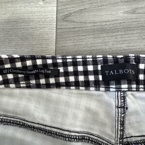 Talbots Check Pattern Corduroy Straight Leg Pants Black White sz 12