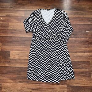 Talbots Chevron Faux Wrap Dress XLP Navy Stretch Jersey Comfort Casual Nautical