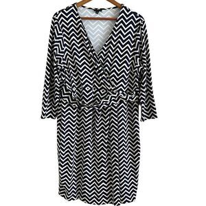 Talbots Chevron Faux Wrap Dress XLP Navy Stretch Jersey Comfort Casual Nautical