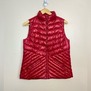 Talbots Chevron Quilted Down Puffer Vest in Holiday Red Cire Warm and Cozy