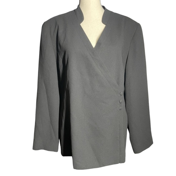 Talbots Stylish black blazer with a unique neckline and button details. Perfect for any occasion.