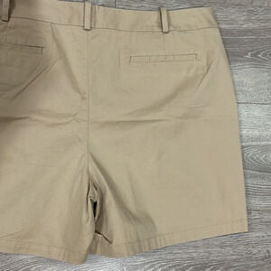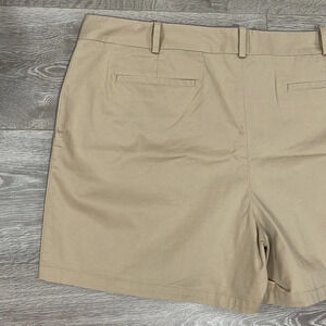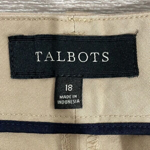 Talbots Chino Short in size 18. Excellent condition. Stretch fabric, sits at waist, two front and two back pockets, faux coin pocket, zipper and 2 button front closure, khaki tan color. Please see photos for approximate measurements and details. Item may show a difference in color based upon photography and perception. Photos are part of the description, as everyone’s level of condition may vary. From smoke free and pet free home. All packages are shipped the same or next business day.