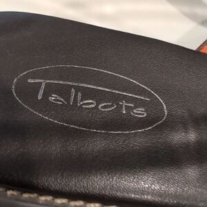 Talbots Chocolate Brown Leather Thong Flat Sandals With Beaded Sunburst