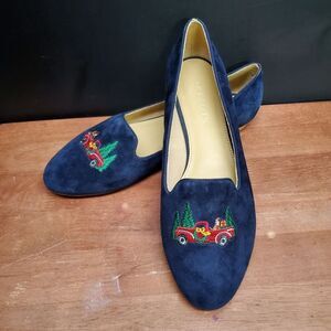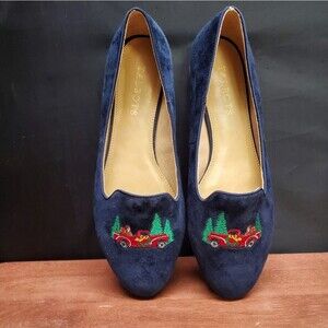 Talbots Christmas Truck Blue Suede Slip On Size 7.5M