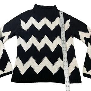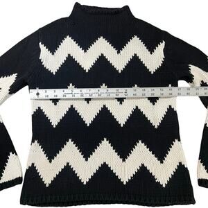 Talbots Chunky Knit Sweater Roll Mock Neck Chevron Black White Cotton Size Small