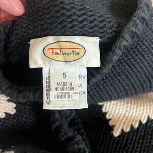 Talbots Chunky Knit Chevron Sweater Black White Cotton Size Small
