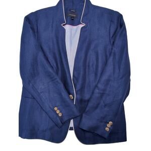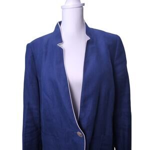 Talbots Classic 100%Linen Navy Blue Blazer Aberdeen Single Button Size 14 Career