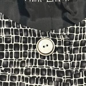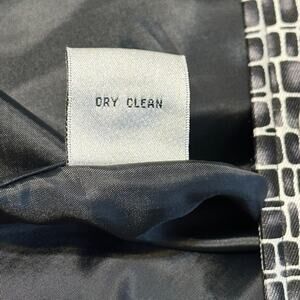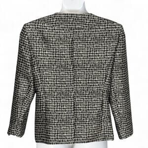 This classic jacket transitions easily from the business day to after-work social hour. The vintage 1990s features a black and white geometric pattern and a silk/wool blend fabric.
