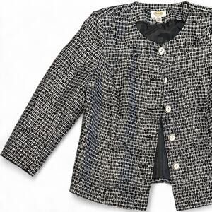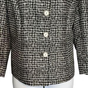 Talbots Classic Blazer Jacket Plus Size 14W Black White Silk Wool Career Vintage