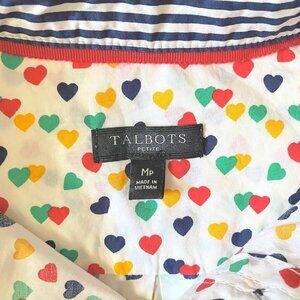 Talbots Classic Cotton Button Up Shirt Multicolor Ditsy Hearts Print size MP