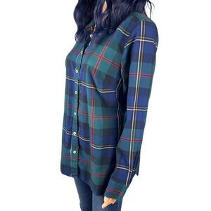 Talbots Classic Cotton Button Up Shirt India Ink Green Blue Plaid Size Medium