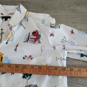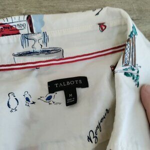 Talbot's Classic Cotton Long Sleeve Button Front Shirt W/ French Graphic Sz Med
