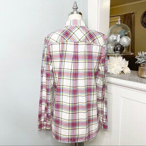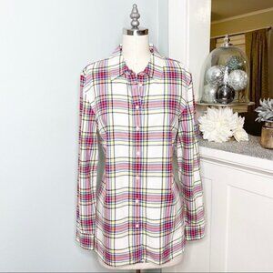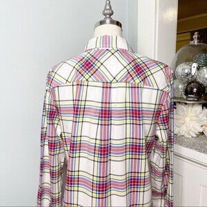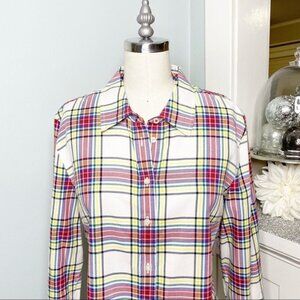 Talbots Classic Cotton Plaid Button Down Shirt Medium White Red Yellow Blue