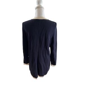 Talbots Classic Long Cardigan Sweater Navy Blue Cream MP