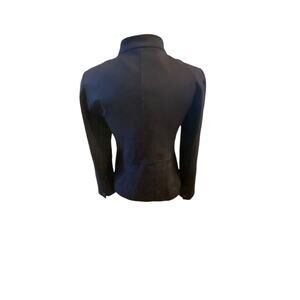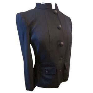 Elevate your wardrobe with this stunning Talbots navy blazer. The blazer features a mandarin collar, anchor buttons, and pockets for added convenience. The mid-length blazer is tailored and lined, making it perfect for winter, fall, and spring seasons.