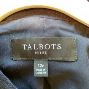 Talbots classic navy blue blazer with gold buttons. Hood front close. Size 12 petite. Worn once. Excellent condition.