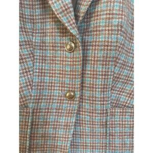 Talbots Classic Shetland Plaid Blazer Tan Aqua Academia Career Essential