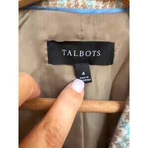 Talbots Classic Shetland Plaid Blazer Tan Aqua Academia Career Essential Size 4