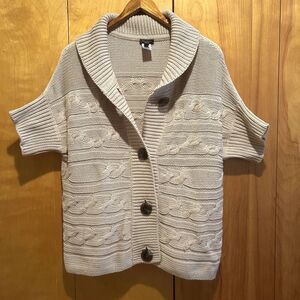 Talbots Classic Short Sleeve Chunky Cable Cardigan-Shawl Collar-Sz L-Preppy
