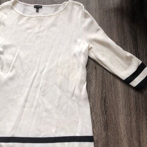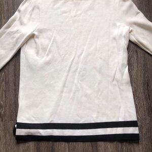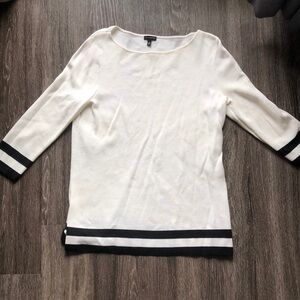Talbots Classic White Sweater with Black Trim | Nautical Style | 3/4 Sleeve