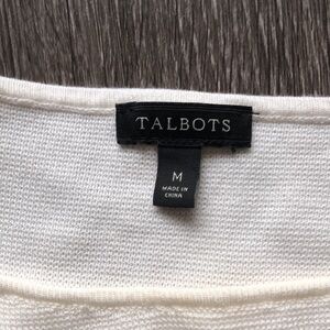 Elevate your wardrobe with this timeless Talbots white sweater featuring bold black trim at the hem and sleeves for a clean, nautical-inspired look. Made with high-quality, soft-knit fabric, this versatile top is perfect for both casual wear and office style.