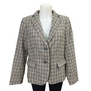 Talbots Classic Wool Blend Herringbone Blazer Jacket Notched Collar Size 10