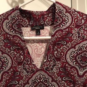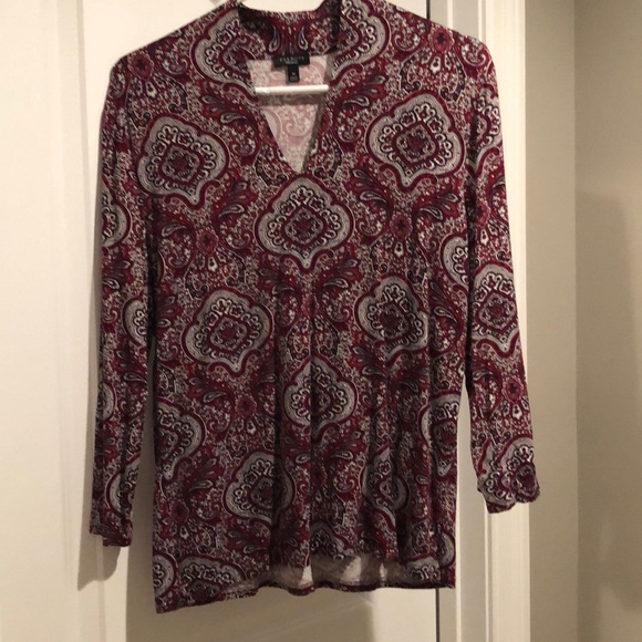 Black, red and white classy, paisley blouse. 3/4 sleeves