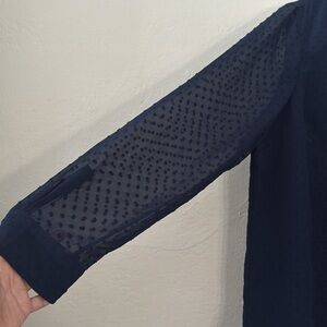 Talbots ClipDot Blue Sheer Sleeve Button Down Blouse Career Evening Petite Large