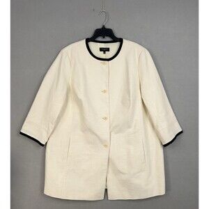 Talbots Coat Women 22W Ivory Textured Black Trim Collarless Capsule Quiet Luxury