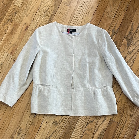 Light gray/cream colored lightweight jacket with hidden buttons. Size 12 petite. In great condition