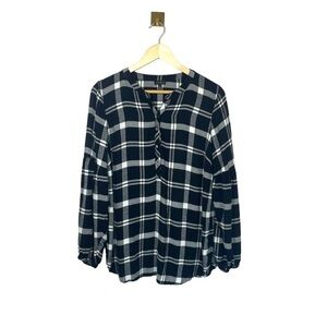 TAGS: talbots, plaid, flannel, cowboy, western, blouse, puff sleeve, work, office, business, casual, concert, tunic, oversized, relaxed