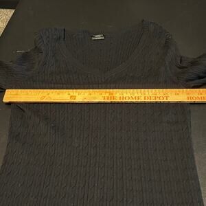 Talbots Collection Black Ribbed V Neck Sweater Pima Cotton NO SIZE TAG