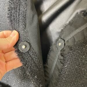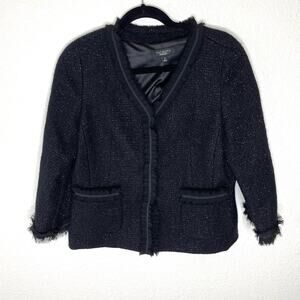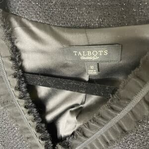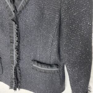 Talbots Collection Black Tweed shimmer Fringed RUFFLE WOOL Jacket Sz 10