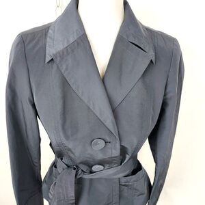 Talbots Collection Gray Belted Jacket Coat Buttons Collar Pockets Womens sz 4