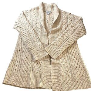 Talbots Collection Long Cable Knit Wool Angora Cashmere Cardigan Sz M Neutral