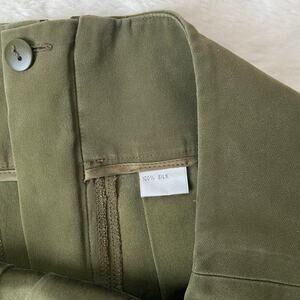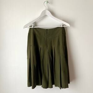 Dark olive green pleated skirt in 100% silk fabric. It's in excellent preowned condition. Size 10. Measurements included in photos.