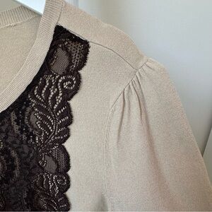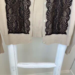 Talbots Collection Women’s Tan with Brown Lace Cardigan Sweater SZ Large
