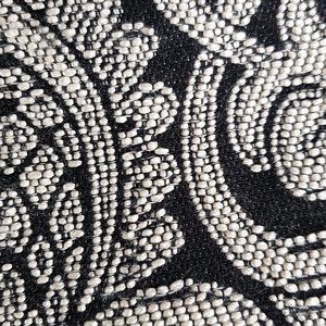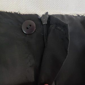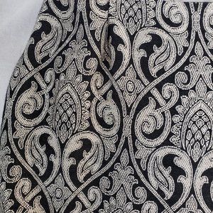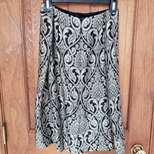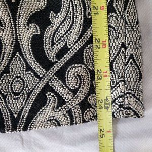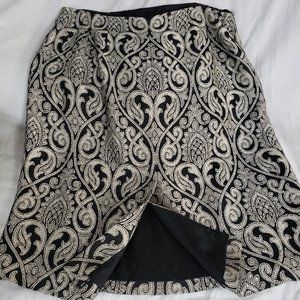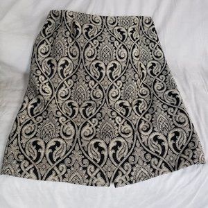 Talbots Collections Knee length Embroidered Skirt. Sz 14. Vintage. Black and Cream color. Hidden zip button closure. Darted in front. no pockets. approx waist 17" wide, length 24"