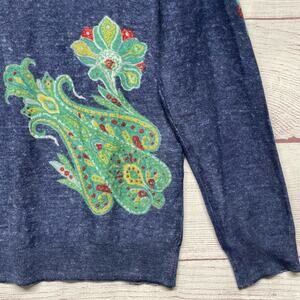 Talbots Collections Blue Green Paisley Print V-neck Pure Italian Merino Wool Sweater Size Petite L