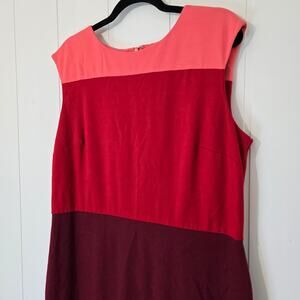 Talbots Colorblock Knit Shift Dress Stretch Red Pink A Line Size 14