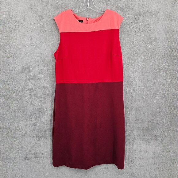 Talbots Colorblock Sheath Dress 16 Peach Red Burgundy Classic Colorful Plus Size