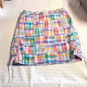 Talbots Colorful Plaid Patchwork Sz. 6 Skirt With Tied Side Cut-outs & Pockets