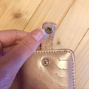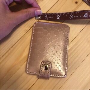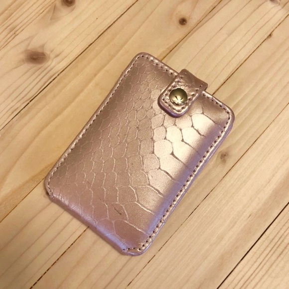 Talbots card holder and mirror in rose gold dusty pink. Crocodile alligator print and snap button closure. Perfect for a night out when you just want to take your card and ID.